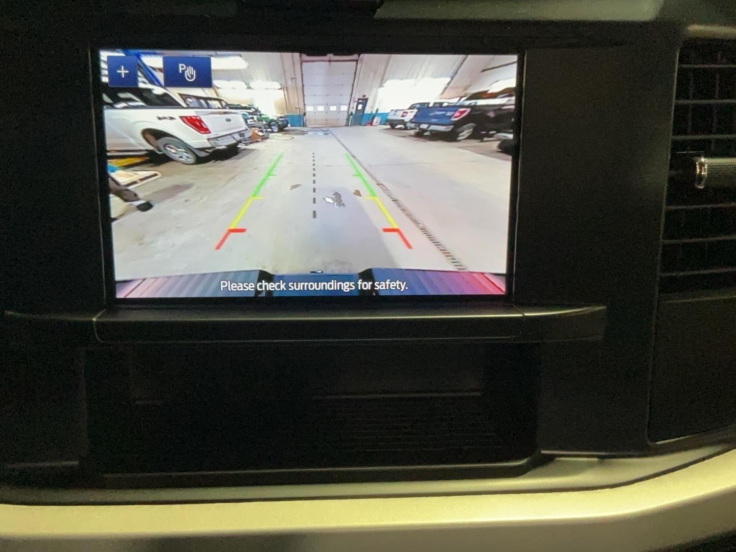 - The vehicle is equipped with a camera that displays an image of the area behind the vehicle on an interior display.