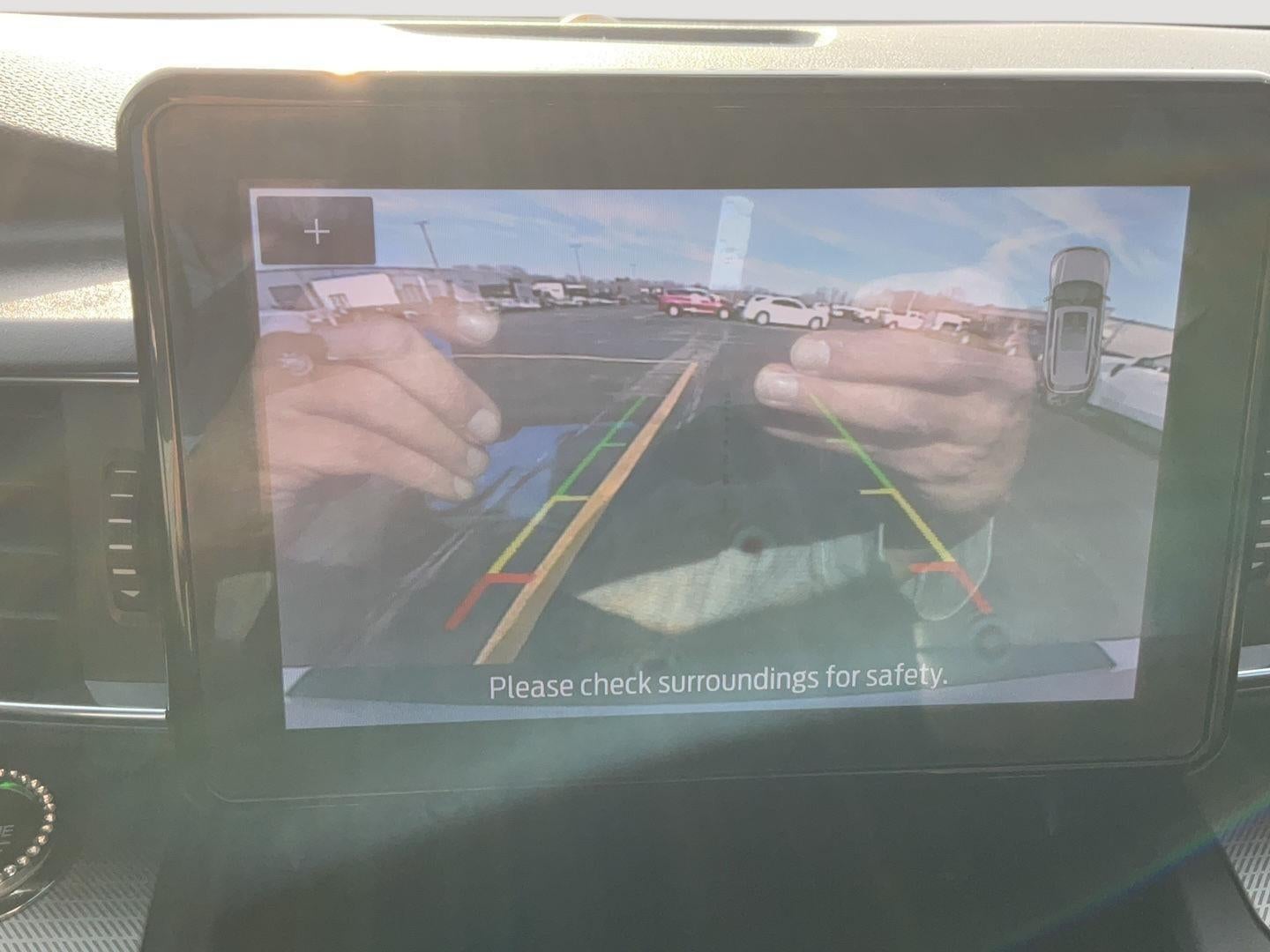 - The vehicle is equipped with a camera that displays an image of the area behind the vehicle on an interior display. The camera is equipped with its own washer.