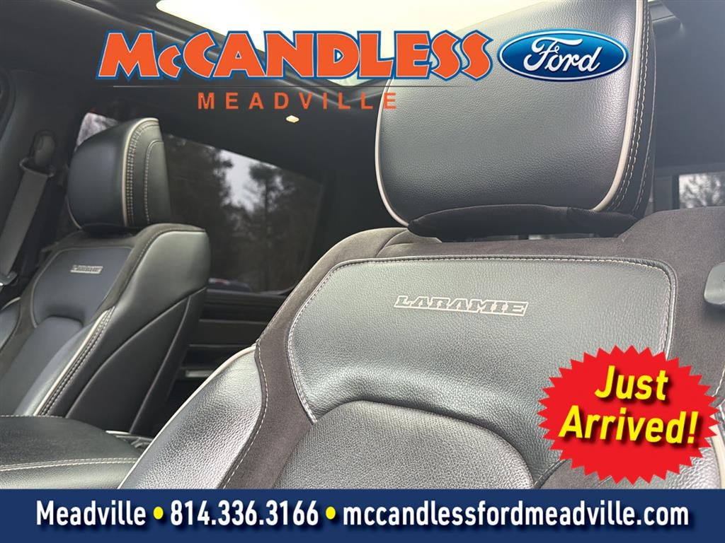 ENGINE: 5.7L V8 HEMI MDS VVT, TRANSMISSION: 8-SPEED AUTOMATIC (8HP75), QUICK ORDER PACKAGE 25H LARAMIE, 3.21 REAR AXLE RATIO, WHEELS: 20"" X 9"" PREMIUM PAINTED W/INSERTS, TIRES: 275/55R20 OWL ALL-TERRAIN, MONOTONE PAINT, BLACK, LEATHER TRIMMED BUCKET SEATS, GVWR: 7,100 LBS, SPORT APPEARANCE PACKAGE, LARAMIE LEVEL 1 EQUIPMENT GROUP, OFF ROAD GROUP, TRAILER BRAKE CONTROL, E-LOCKER REAR AXLE, DUAL-PANE PANORAMIC SUNROOF, REAR WHEELHOUSE LINERS, RADIO: UCONNECT 12 W/NAVIGATION, PARKSENSE FRONT/REAR PARK ASSIST W/STOP